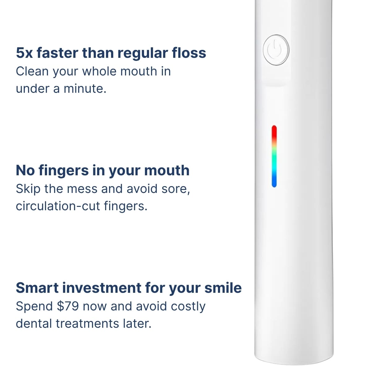 Think of it like investing in an electric toothbrush. You pay upfront for a superior clean and long-term savings at the dentist. And with refills averaging just $5/month, it’s right in line with the cost of regular floss—but with a lot more convenience.